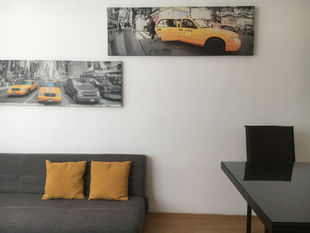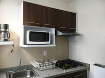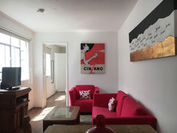 Departamento de una recámara con cama matrimonial, baño con cancel de cristal, mosaico y agua caliente; equipado con cocineta y electrodomésticos, sala modular, TV con cable SKY y comedor para 4 personas.